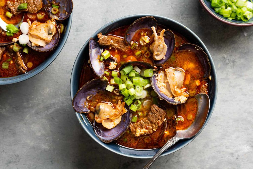 Spicy Silken-tofu Soup Korean Soy-bean Paste with Rice (Seafood)